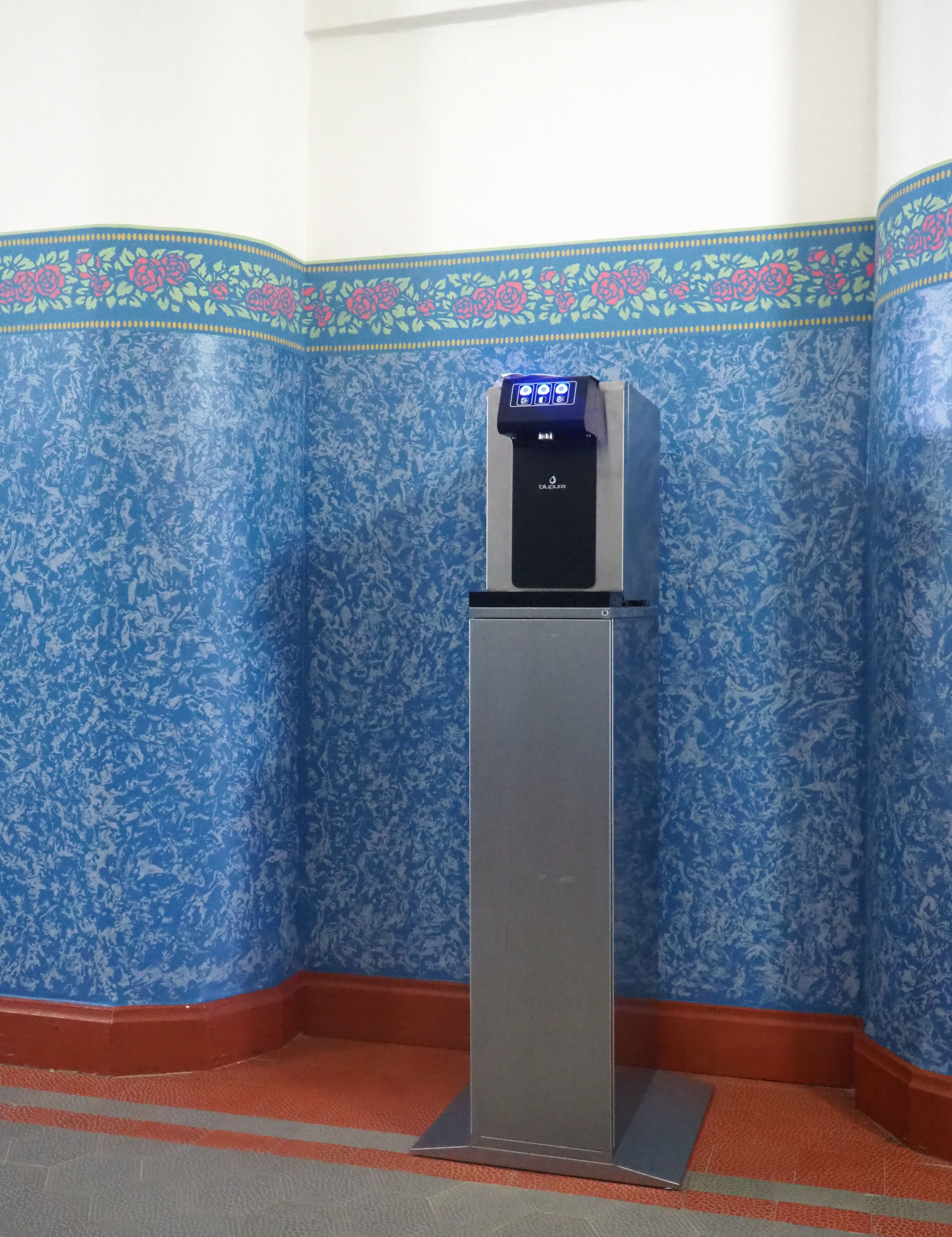 Frisches Sprudelwasser gibt es aus dem Wasserspender, welcher neben der Lehrküche im 2. OG installiert ist.