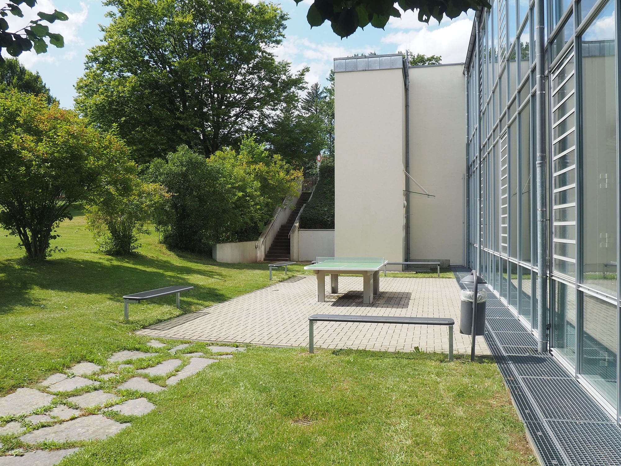 Der Mariengarten - unser seit Jahrzehnten genutzter und beliebter Pausenhof hinter unserer Oberschule. Dieser Pausenhof dient vor allem der Erholung, aber auch für Sport und Spiel. So kann Fußball und Tischtennis im Pausenhof sowie Basketball im Innenhof gespielt werden.